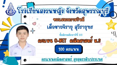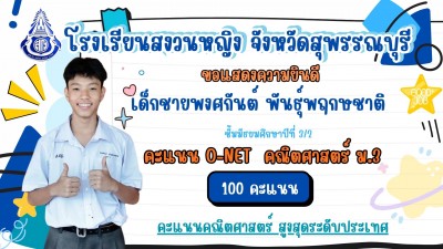 ขอแสดงความยินดีกับนักเรียนที่สอบ o-net ได้คะแนนเต็ม