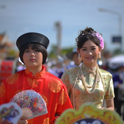 13 สิงหาคม 2557 นางนงลักษณ์ ศุภโสภณ รองผู้อำนวยการฯ พร้อมทั้ง คณะครู นักเรียน และวงโยธวาทิต โรงเรียนสงวนหญิง เข้าร่วมงานประเพณีทิ้งกระจาด จังหวัดสุพรรณบุรี
