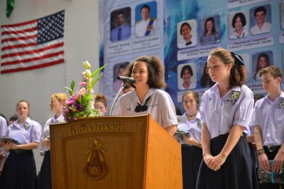 30 มิถุนายน 2557 A warm welcome to Sa-nguan Ying School พิธีต้อนรับและแนะนำตัวนักเรียนแลกเปลี่ยนจากรัฐแทสมาเนีย ประเทศออสเตรเลีย