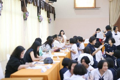 วันพฤหัสบดีที่ 14 มีนาคม 2562 บรรยากาศการรับรายงานตัวนักเรียนที่ผ่าน การสอบคัดเลือกเข้าศึกษาต่อชั้นมัธยมศึกษาปีที่ 4 ปีการศึกษา 2562 ประเภทห้องเรียนพิเศษ >>>โครงการห้องเรียนพิเศษวิทยาศาสตร์ คณิตศาสตร์ เทคโนโลยี และสิ่งแวดล้อม (SMTE) >>>โครงการพัฒนาประเทศไทยเป็นศูนย์กลาง การศึกษาในภูมิภาค (Education Hub) โปรแกรมนานาชาติ (International Program : IP) ณ ห้องมัลติมีเดีย โรงเรียนสงวนหญิง
