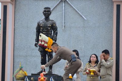 วันพฤหัสบดีที่ 17 มกราคม 2562 ตัวแทนข้าราชการครูโรงเรียนสงวนหญิง ร่วมพิธีวางพานพุ่มดอกไม้สดถวายราชสักการะ พ่อขุนรามคำแหงมหาราช ณ หอประชุมอาชาสีหมอก ศาลากลางจังหวัดสุพรรณบุรี