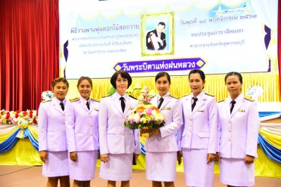 วันพุธที่ 14 พฤศจิกายน 2561 ฝ่ายบริหาร คณะครู และบุคลากรโรงเรียนสงวนหญิง ร่วมพิธีวางพานพุ่มดอกไม้สด เนื่องใน 'วันพระบิดาแห่งฝนหลวง' ประจำปี 2561 ณ หอประชุมอาชาสีหมอก ศาลากลางจังหวัดสุพรรณบุรี