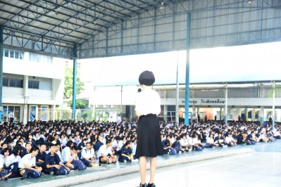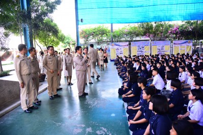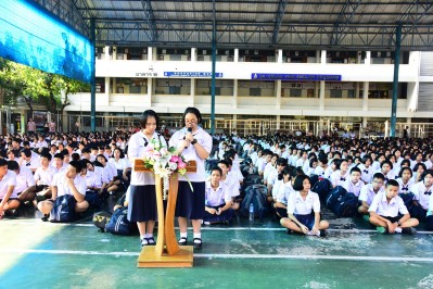 วันพฤหัสบดีที่ 15 พฤศจิกายน 2561 บรรยากาศการแนะนำตัวและหาเสียง ของผู้สมัครประธานสภานักเรียนและ นักเรียนหัวหน้าคณะ ปีการศึกษา 2562 ของโรงเรียนสงวนหญิง จังหวัดสุพรรณบุรี