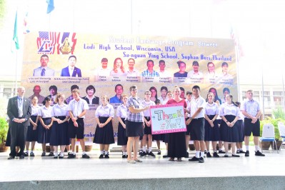 วันอังคารที่ 20 พฤศจิกายน 2561 ผอ.ดร.นิติกรณ์ ฉันท์วงศ์ชนะ ฝ่ายบริหาร คณะครู และนักเรียนโรงเรียนสงวนหญิง ทำพิธีอำลาครูและนักเรียนโครงการแลกเปลี่ยน 'Student Exchange Program Between Lodi High School, Wisconsin, USA Sa-nguan Ying School, Suphan Buri, Thailand'
