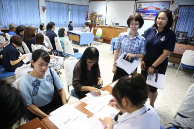 วันพฤหัสบดีที่ 9 สิงหาคม 2561 สำนักงานบริการเทคโนโลยีสาธาณสุขและสิ่งแวดล้อม คณะสาธารณสุขศาสตร์ มหาวิทยาลัยมหิดล จัดหน่วยแพทย์เคลื่อนที่ตรวจสุขภาพครูและ บุคลากรของโรงเรียนสงวนหญิง