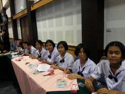 วันจันทร์ที่ 16 กรกฎคม 2516 คณะครูและลูกสงวนหญิงร่วมงาน 'สืบสานศาสตร์ศิลป์ ส่งเสริมสยาม สู่ความยั่งยืน' นักเรียนปฏิบัติงานประดิษฐ์จากผ้าไทย บายศรีปากชาม ณ มหาวิทยาลัยราชภัฏสวนดุสิตศูนย์สุพรรณบุรี ผลผลิตสวยงามมากๆค่ะ