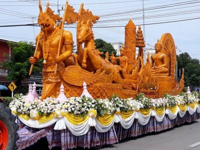วันอาทิตย์ที่ 22 กรกฎาคม 2561 คณะครูและลูกสงวนหญิง ร่วมขบวนแห่เทียนพรรษา จังหวัดสุพรรณบุรี ประจำปี 2561