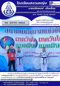 ขอแสดงความยินดีกับนักเรียนที่ได้รับรางวัลเหรียญทองชนะเลิศทีมหญิง และเป็นตัวแทนนักกีฬาเทควันโด ในการแข่งขันกีฬาเยาวชนแห่งชาติครั้งที่ 37