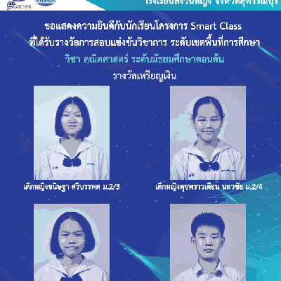 ขอแสดงความยินดีกับนักเรียนที่ได้รับรางวัล การสอบแข่งขันวิชาการ ระดับเขตพื้นที่การศึกษา วิชาคณิตศาสตร์ ระดับชั้นมัธยมศึกษาตอนต้น