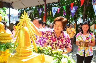 วันพุธที่ 18 เมษายน 2561 ดร.นิติกรณ์ ฉันท์วงศ์ชนะ ผู้อำนวยการโรงเรียนสงวนหญิง ฝ่ายบริหาร และคณะครู ร่วมรดน้ำขอพร ผู้ว่าราชการจังหวัดสุพรรณบุรี ผู้อำนวยการสำนักงานเขตพื้นที่การศึกษามัธยมศึกษาเขต 9 บุคลากรผู้เกษียณอายุราชการ ผู้อาวุโส ผู้ใหญ่ที่เคารพและผู้อุปการะคุณโรงเรียนสงวนหญิง เนื่องในเทศกาลวันสงกรานต์สืบสานประเพณีไทย