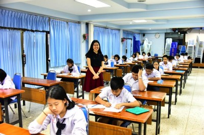วันเสาร์ที่ 10 มีนาคม 2561 บรรยากาศการสอบเข้าศึกษาต่อชั้นมัธยมศึกษาปีที่ 1 โครงการห้องเรียนพิเศษ English Program และ โครงการ Smart Class ของโรงเรียนสงวนหญิง กองกลางสนามสอบ คุณครูคุมสอบ คณะกรรมการตรวจข้อสอบ เจ้าหน้าที่ทุกฝ่าย ปฏิบัติหน้าที่ตามที่ได้รับมอบหมาย คนสำคัญในวันนี้.