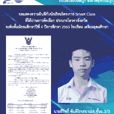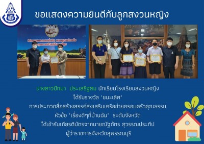 ขอแสดงความยินดีกับนักเรียนที่ได้รับรางวัลชนะเลิศ การประกวดสื่อสร้างสรรค์ส่งเสริมเครือข่ายครอบครัวคุณธรรม ประจำปีงบประมาณ พ.ศ.2565