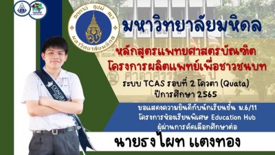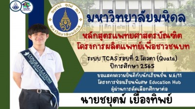 ขอแสดงความยินดีกับนักเรียนที่ผ่านการคัดเลือกเพื่อเข้าศึกษาต่อระดับมหาวิทยาลัยในปีการศึกษา 2565