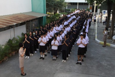 วันจันทร์ที่ 8 มกราคม 2561 โรงเรียนสงวนหญิง จังหวัดสุพรรณบุรี จัดกิจกรรม 'การประกวดสวดมนต์หมู่ทำนองสรภัญญะ' ของนักเรียนระดับชั้นมัธยมศึกษาปีที่ 1