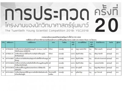 ขอแสดงความยินดีกับความสำเร็จของลูกสงวนหญิง และครูผู้ฝึกซ้อม กับการประกวดโครงงานของนักวิทยาศาสตร์รุ่นเยาว์ ครั้งที่ 20 The twentieth Young Scientist Competition (YSC 2018) ที่ผ่านการคัดเลือกให้ได้รับทุนวิจัย จำนวน 6 โครงงาน จากการคัดเลือกในเขตภูมิภาคภาคกลาง ร่วมเป็นกำลังใจในการประกวดรอบต่อๆไปค่ะ