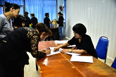 วันที่ 25 ตุลาคม 2560 บุคลากรโรงเรียนสงวนหญิง และจิตอาสาจากหน่วยงานต่าง ๆ อีกหนึ่งวันกับการเตรียมความพร้อม คุณครูบางท่านมีเวรน้ำของโรงเรียนกรรณสูตศึกษาลัยด้วย เตรียมความพร้อมทั้งสองโรงเรียนนำน้ำแช่ใส่ถังเรียบร้อยค่ะ...ส่วนบริการห้องสุขาซึ่งเป็นเรื่องที่จิตอาสาให้ความสำคัญ พับใบเตยเป็นดอกไม้อย่างปราณีต เตรียมมะกรูด อ่างลอยดอกไม้ รองเท้าฟองน้ำ ฯลฯ เพื่อให้สถานที่ที่รับผิดชอบสะอาดและสวยงามที่สุด...ห้องสุขาอาคารสมเด็จพระนเรศวร ชั้นบน ขอบพระคุณ พี่ป้า น้า อา จิตอาสาทุกคน...พวกท่านสุดยอดมากค่ะ