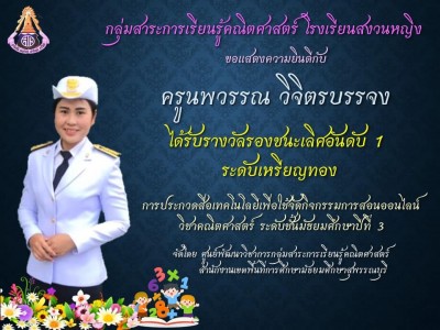 ขอแสดงความยินดีกับคุณครูกลุ่มสาระการเรียนรู้คณิตศาสตร์ ที่ได้รับรางวัลการประกวดสื่อเทคโนโลยีเพื่อใช้จัดกิจกรรมการสอนออนไลน์