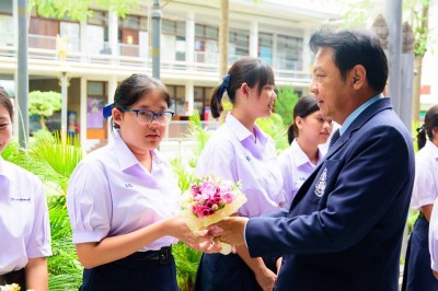 14 กรกฎาคม 2559 ท่านผู้อำนวยการประชอบ หลีนุกูล ผู้อำนวยการโรงเรียนสงวนหญิง กลุ่มสาระการเรียนรู้ภาษาต่างประเทศ ศูนย์ OEG จ.สุพรรณบุรี ศูนย์ AFS จ. สุพรรณบุรี โครงการ EP และโครงการ Smart Class และสภานักเรียน มอบช่อดอกไม้แสดงความยินดีและต้อนรับการกลับมา ของนักเรียนที่ไปศึกษาต่อ ณ ต่างประเทศ เพื่อแลกเปลี่ยนวัฒนธรรม