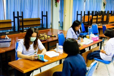 3 กรกฏาคม 2559 คณะครูกลุ่มสาระฯสุขศึกษาและพลศึกษา ทำหน้าที่ประสานงานกับเจ้าหน้าที่จากโรงพยาบาล เพื่อมาตรวจสุขภาพให้กับนักเรียนเป็นประจำทุกปี