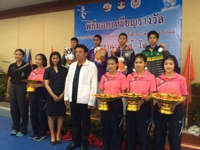 12 มีนาคม 2559 ผู้อำนวยการประชอบ หลีนุกูล ผู้อำนวยการโรงเรียนสงวนหญิง ให้กำลังใจและมอบเหรียญรางวัลให้กับนักกีฬาคาราเต้-โด ในงานสุพรรณบุรีเกมส์