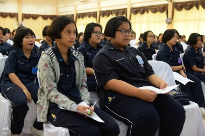 8 กุมภาพันธ์ 2558 นักเรียนเข้ารับการอบรมโครงการ เยาวชนวัยใส ห่างไกลยาเสพติด คิดรู้เท่าทันสื่อ